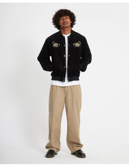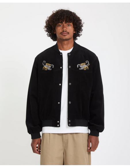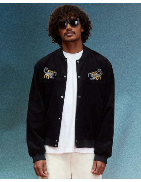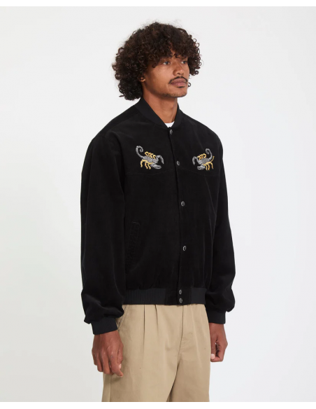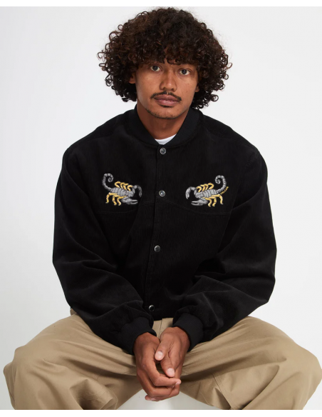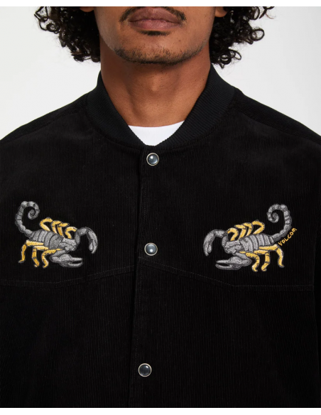 This corduroy varsity jacket exudes Western attitude with Mickey Mason embroidery and a cool snap front closure.