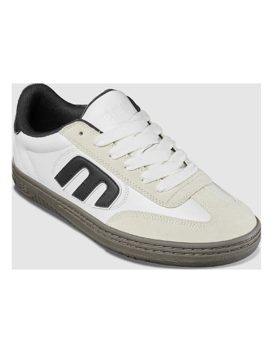 An Etnies Footwear Locut Skate Shoes White/Black/Gum Color