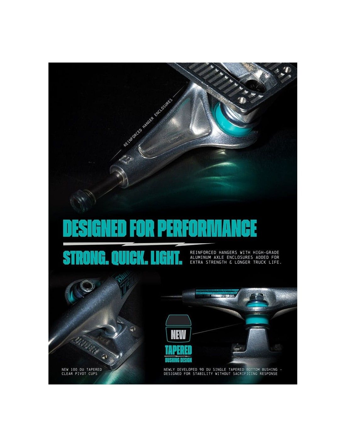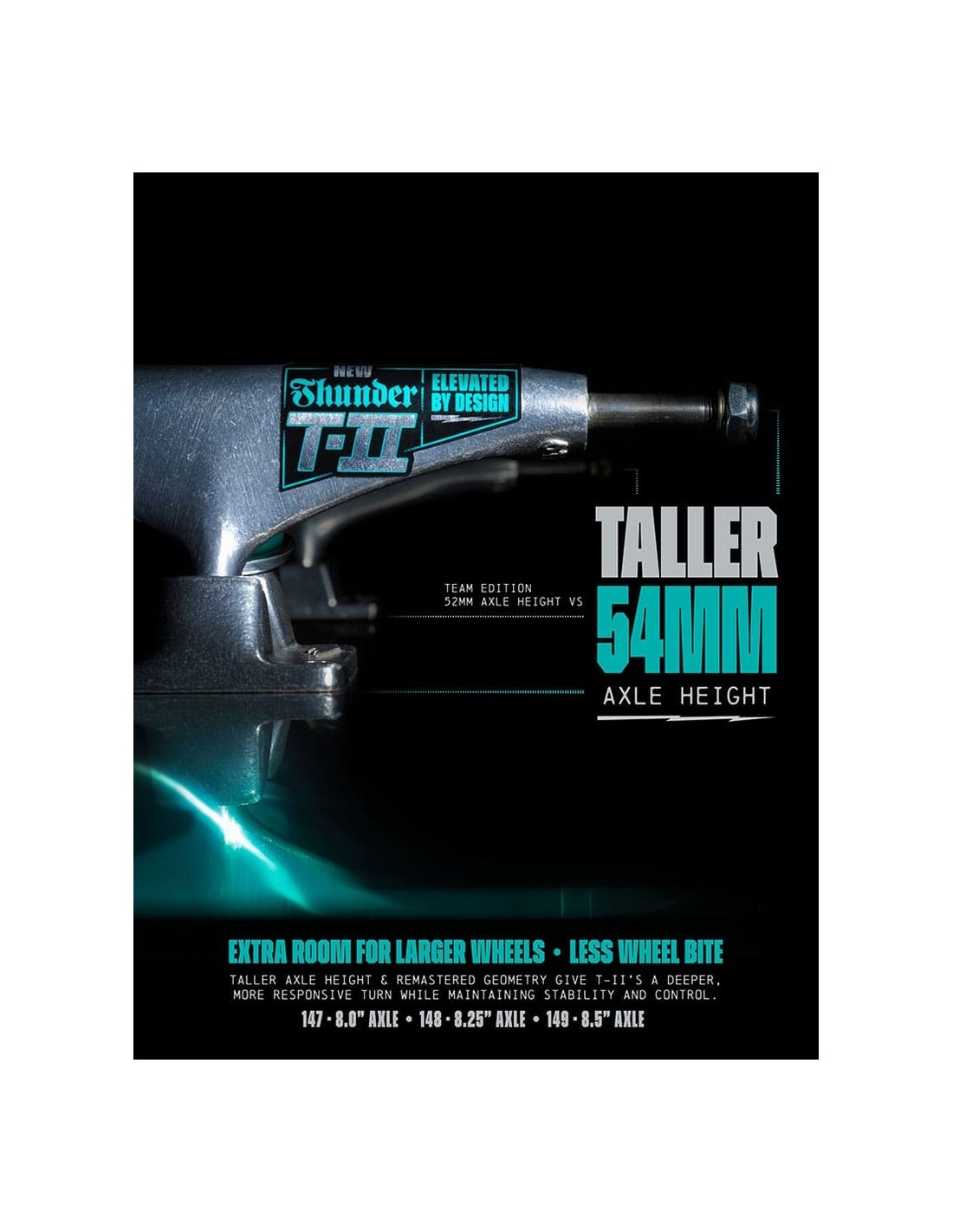 - Hace el Wheelbase de la tabla más corto que muchos otros ejes. Esto da una sensación de ligereza extra en el pop.