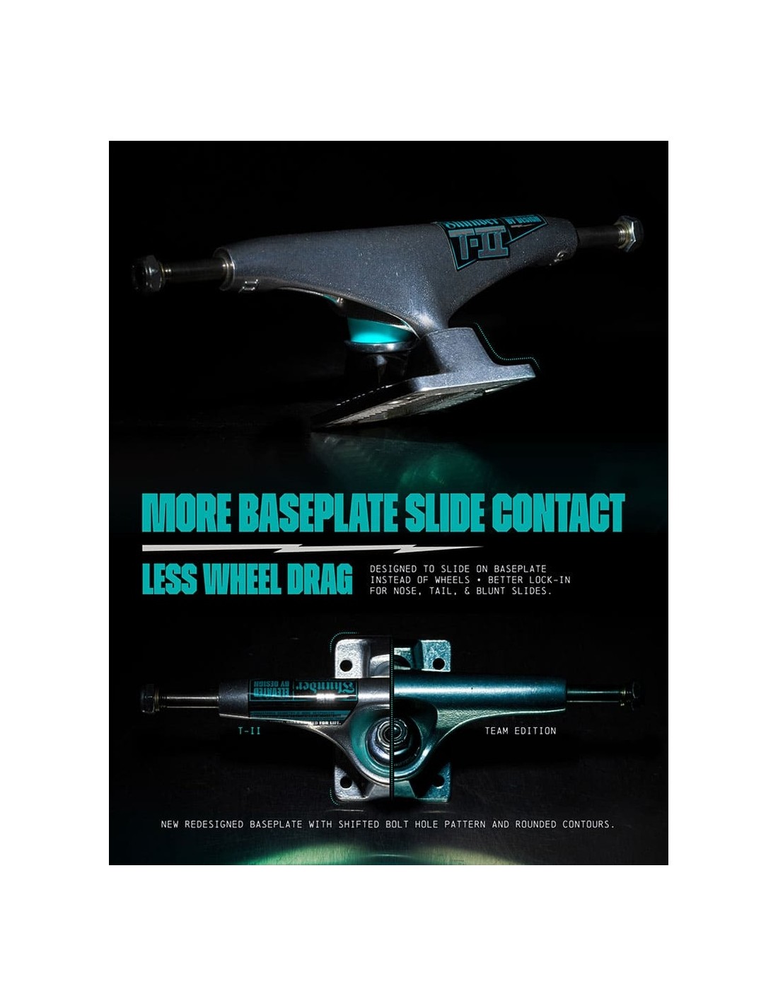 - Base más amplia para mejores slides. Diseñados para deslizar con la base y no con las ruedas. Mejor slide en nose, tail y bluntslides.
